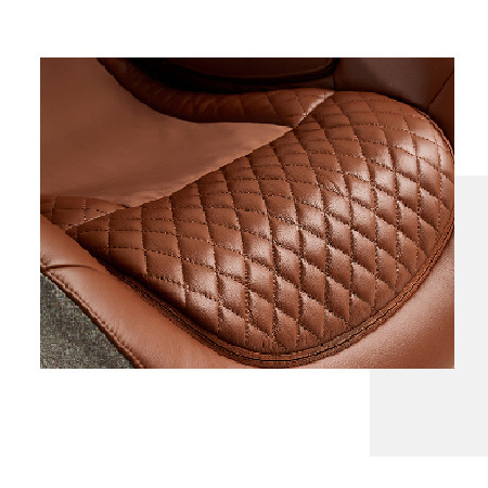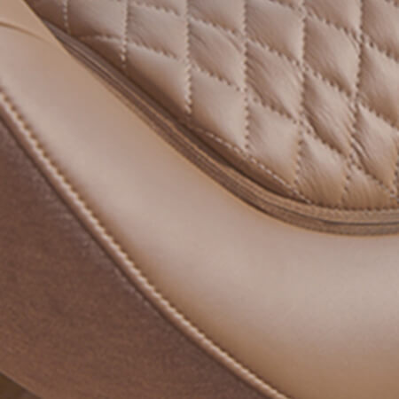 Der CERAGEM PAUSE Massagesessel überzeugt mit vielfältigen technischen Finessen und seinem schicken Äußeren: Das moderne Erscheinungsbild, ist geprägt von seinen harmonischen Rundungen und wirkt trotz seiner Größe filigran. Gehalten wird der Sessel von einem silberfarbigen Drehfuß mit vier kreuzförmig angeordneten Haltern. Der Sitzbezug ist aus strapazierbarem braunem Echtleder in Steppoptik. Das Material ist somit leicht abwaschbar und hygienisch. Die Außenseiten sind mit luxuriös anmutendem, braunem Stoff überzogen. Abgerundet wird das bequeme Möbelstück durch ein Nackenkissen und einem Fußhocker, dessen Optik an den Sessel angelehnt ist.