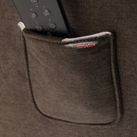 - Praktische Tasche für die Fernbedienung.