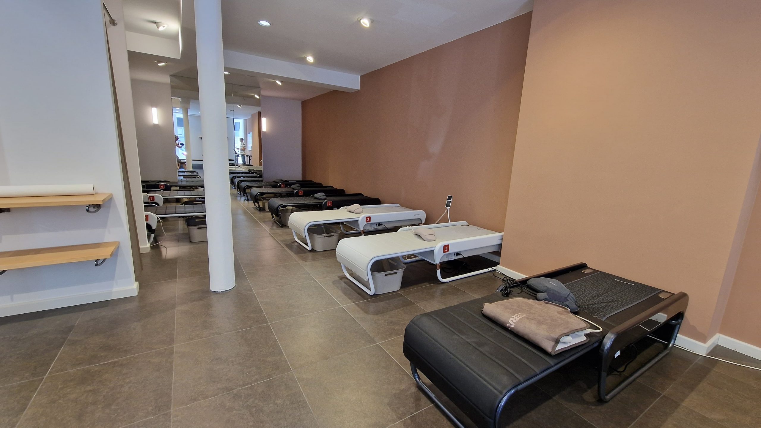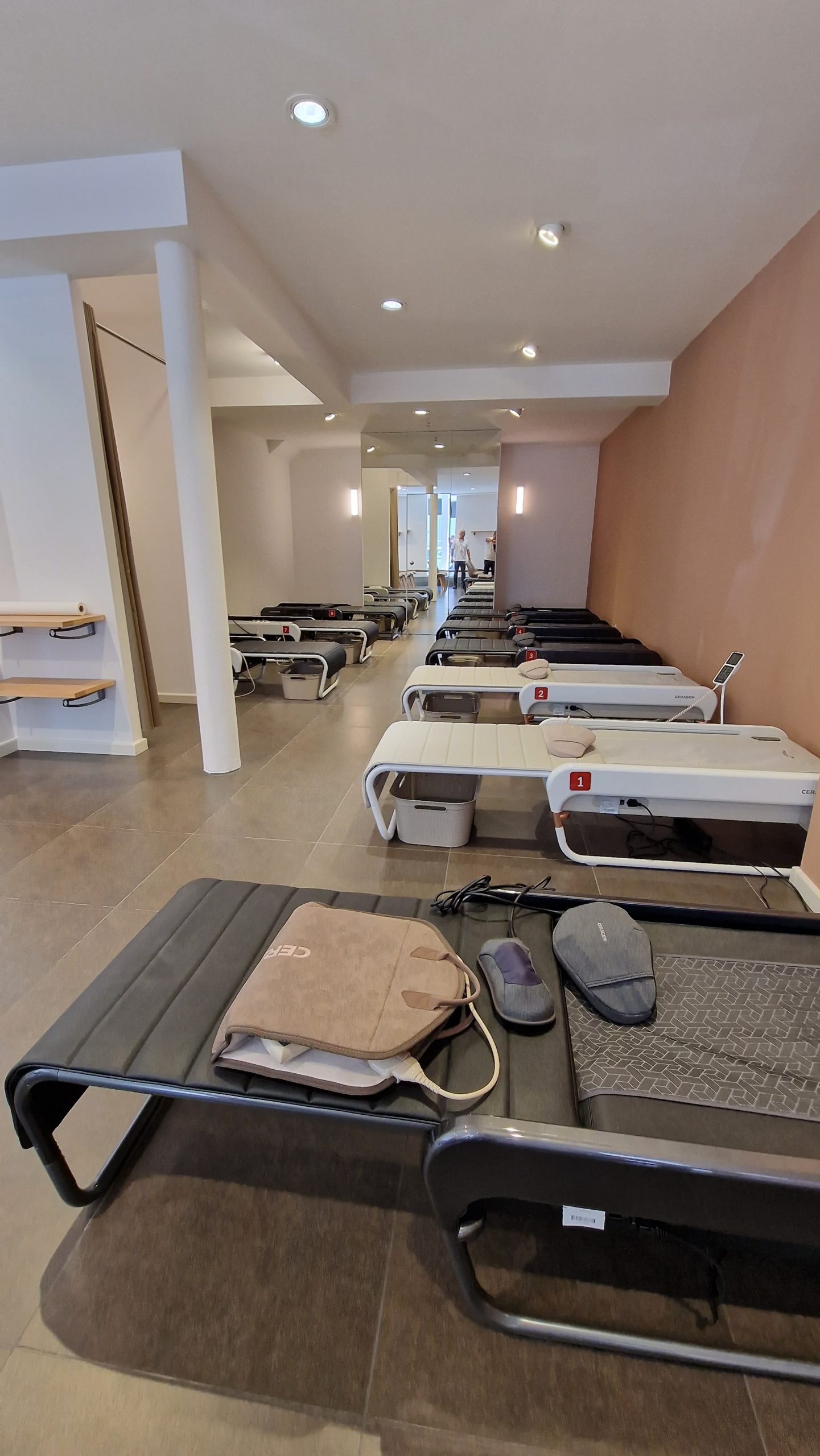 Mittelpunkt dieses brandneuen CERAGEM Centers ist zweifellos die hochmoderne vollautomatische Massageliege Master V4. Diejenigen, die bereits mit den CERAGEM-Einrichtungen vertraut sind, wissen, dass die Master V4 nicht nur eine Massageliege ist – sie ist eine Quelle der Revitalisierung, Entspannung und des allgemeinen Wohlbefindens. Die neueste Version dieser Massageliege ist darauf ausgelegt, Ihre Erfahrung auf ein neues Niveau zu heben, und steht nun bereit, von Ihnen getestet und erlebt zu werden.