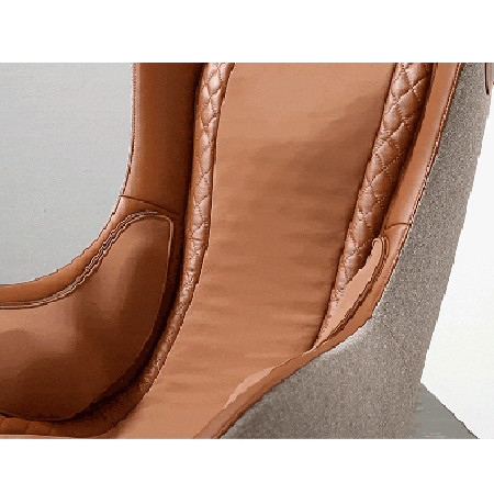 Der CERAGEM PAUSE Massagesessel überzeugt mit vielfältigen technischen Finessen und seinem schicken Äußeren: Das moderne Erscheinungsbild, ist geprägt von seinen harmonischen Rundungen und wirkt trotz seiner Größe filigran. Gehalten wird der Sessel von einem silberfarbigen Drehfuß mit vier kreuzförmig angeordneten Haltern. Der Sitzbezug ist aus strapazierbarem braunem Echtleder in Steppoptik. Das Material ist somit leicht abwaschbar und hygienisch. Die Außenseiten sind mit luxuriös anmutendem, braunem Stoff überzogen. Abgerundet wird das bequeme Möbelstück durch ein Nackenkissen und einem Fußhocker, dessen Optik an den Sessel angelehnt ist.