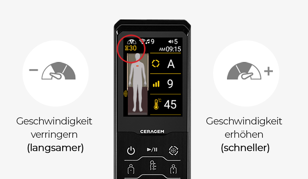 Mit der Geschwindigkeitssteuerung kann die Massage langsamer oder schneller eingestellt werden.